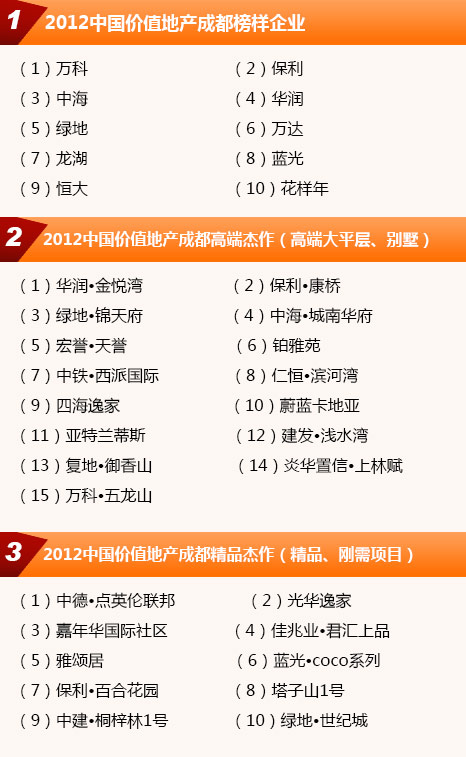 2011年12月,《成都商報》聯(lián)合《每日經(jīng)濟新聞》推出“2012中國價值地產(chǎn)成都榜”暨“2012中國價值地產(chǎn)成都年會”。