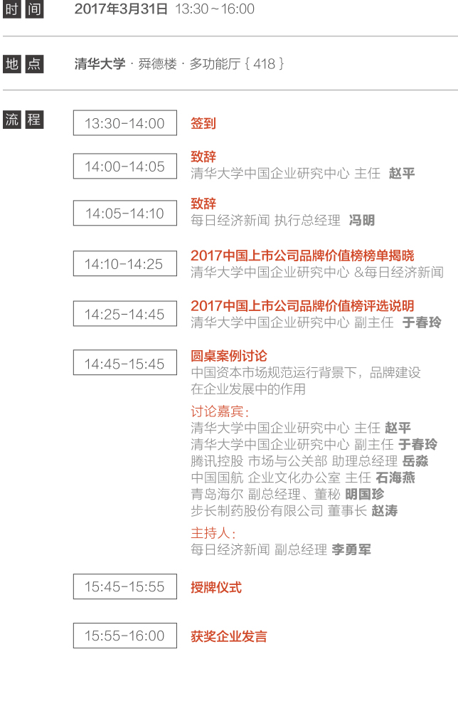 3月31日下午,清華大學(xué)中國(guó)企業(yè)研究中心聯(lián)合每日經(jīng)濟(jì)新聞,在清華大學(xué)發(fā)布“中國(guó)上市公司品牌價(jià)值榜”。經(jīng)過(guò)近1年的研究籌備,這份被稱為“首次定義中國(guó)上市公司品牌價(jià)值”的榜單備受業(yè)界和資本市場(chǎng)期待。