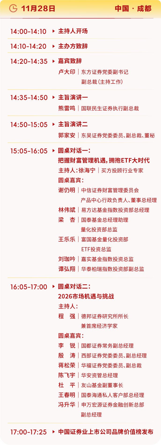 當前,在“穩(wěn)質(zhì)強基”的發(fā)展基調(diào)下,資本市場既注重筑牢制度根基、提升上市公司質(zhì)量,又積極為科技創(chuàng)新企業(yè)開辟成長通道。2025資本市場高質(zhì)量發(fā)展論壇以“穩(wěn)質(zhì)強基,向新而行”為主題,邀請行業(yè)大咖,金融專家等共聚成都,共話資本市場新機遇齊繪科創(chuàng)發(fā)展新藍圖!